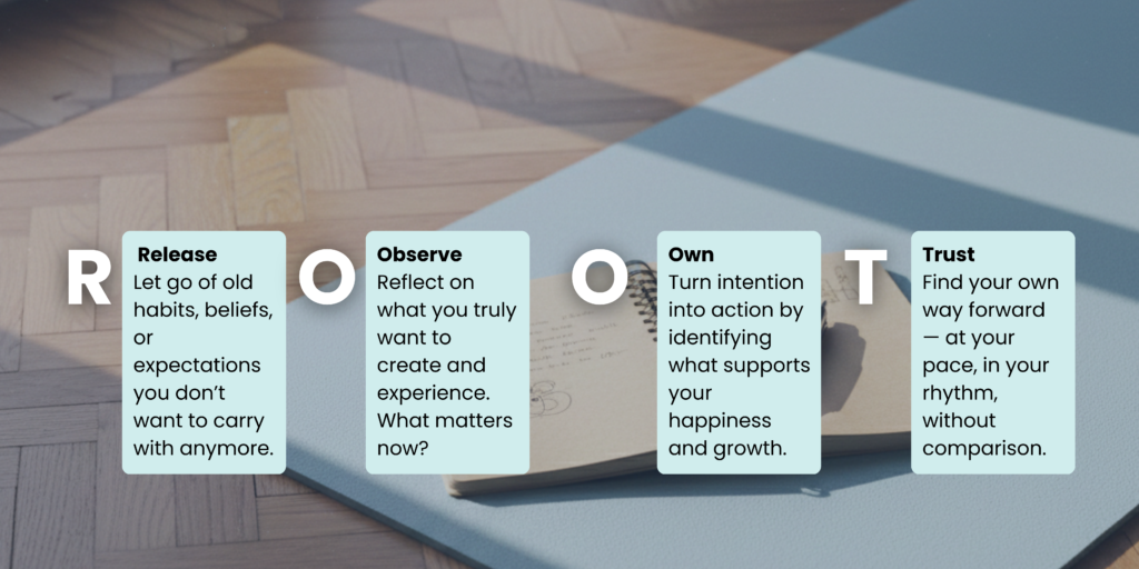 Through gentle yoga, mindful breathing, and guided writing, you’ll create space to listen inward — away from noise, pressure, and expectations. This is not about resolutions you have to keep. It’s about intentions you want to live.